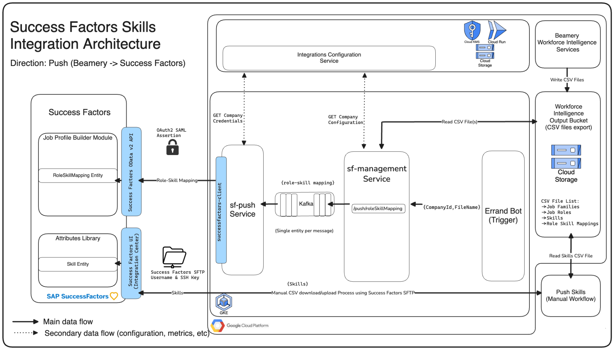 The Role-Skill mapping push utilises the SAP ODATA API, specifically these endpoints: